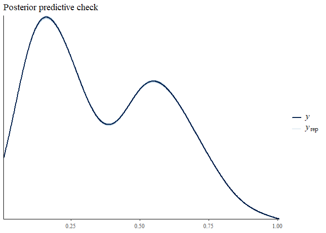 Posterior predictive checks can be performed using the post_predictive() function to ensure that the model fits well. Note that, by default, the input dissimilarities are scaled so that the maximum value is 1. This can be toggled off with scale = TRUE, but it is recommended to provide different hyperparameters (using the hyper_params argument) if scaling is disabled.