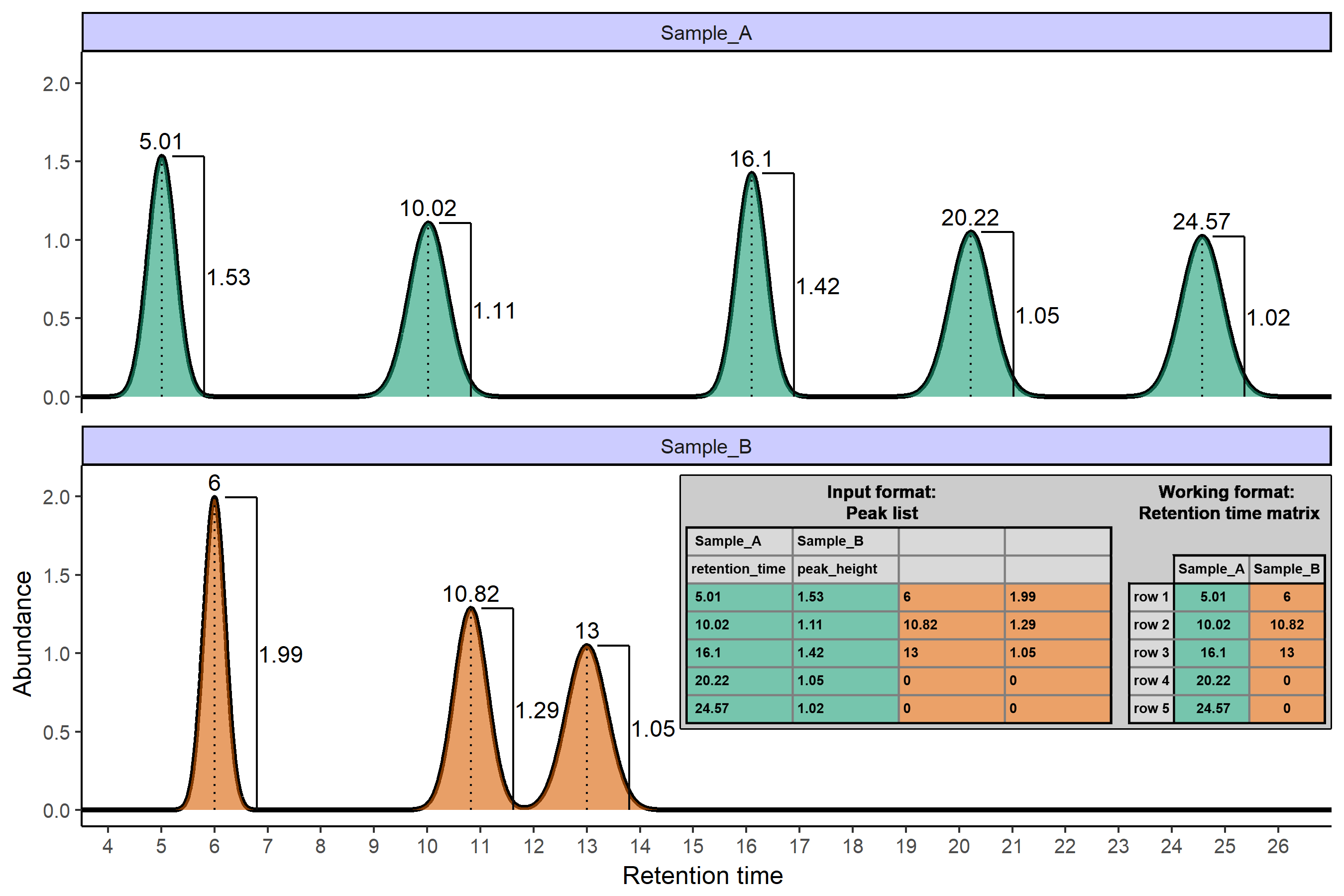 alignment. The package supports any other one-dimensional chromatography