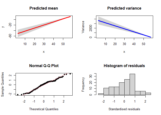 We can also run a model with semi-parametric mean (4 internal knots) and semi-parametric variance (2 knots):