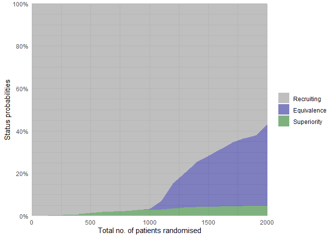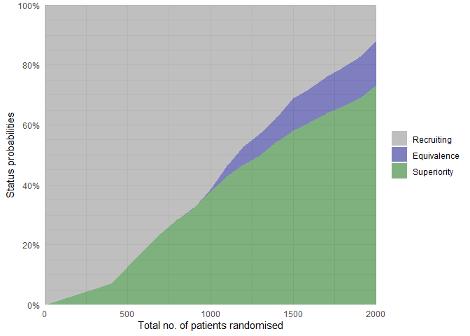 #> Number of patients randomised at each look:  400, 500, 600, 700, 800, 900, 1000, 1100, 1200, 1300, 1400, 1500, 1600, 1700, 1800, 1900, 2000, 2000